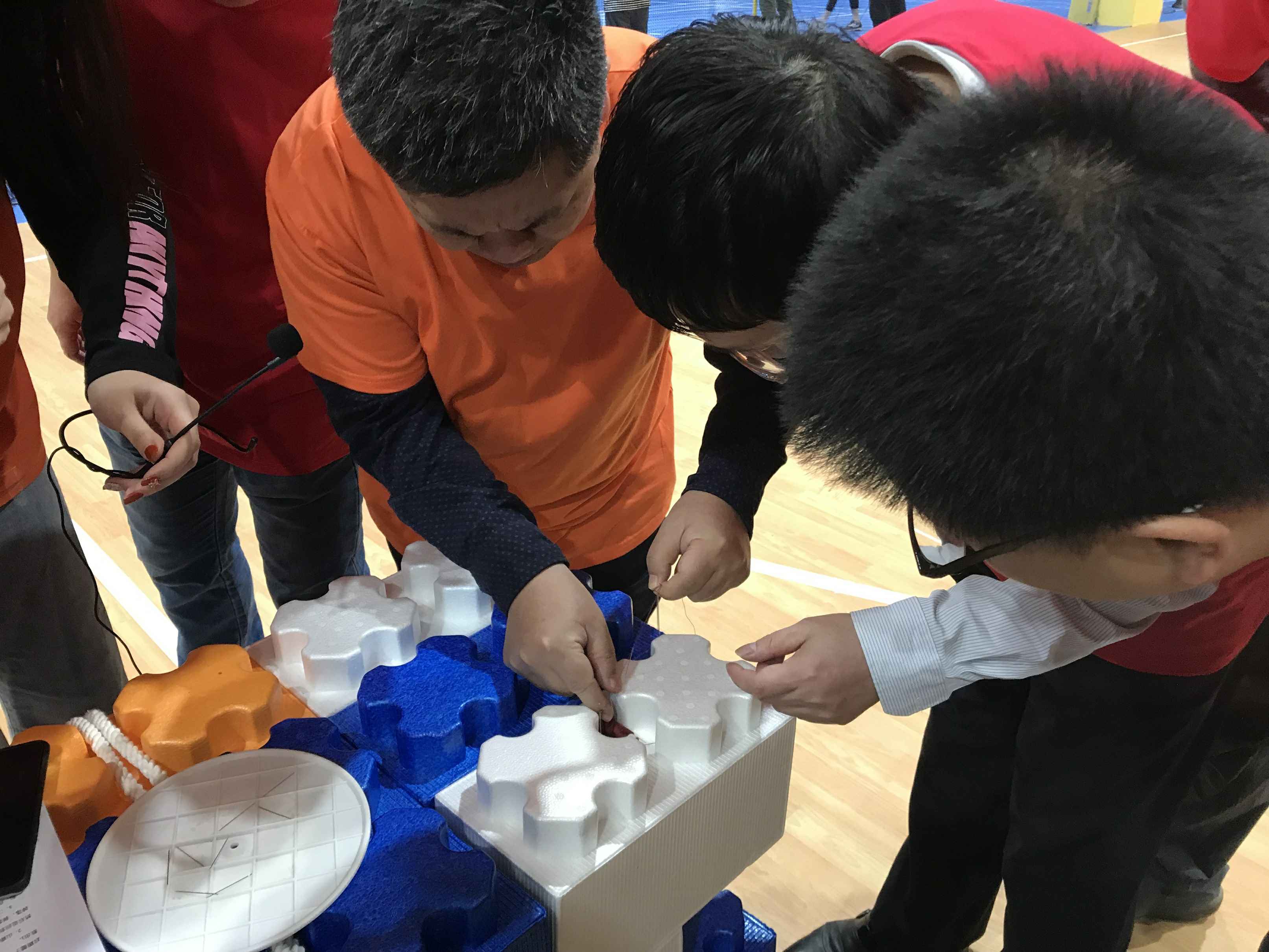 本次运动会以团体赛的形式进行,通过抽签的形式进行了分队,红队与蓝队分别选择出队长并在队长的带领下认真研究每个项目规则,确定每个项目队员出场顺序及出场队员的选取,探究项目技巧,制定项目策略。