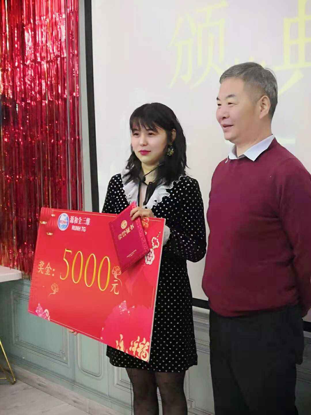 晚宴大家在共同享用美食的同时也进行了很多趣味游戏,大家默契配合,集合团队的智慧,伴随着阵阵欢笑,开展了一次又一次“斗智斗勇”,游戏的间歇,是福利环节,梅总为大家播撒红包雨并抽取幸运星。